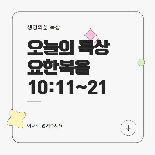 사랑의 하나님 아버지, 오늘 말씀을 통해 예수님이 우리의 선한 목자이심을 깨닫게 하시니 감사합니다. 우리를 위해 생명을 내어주신 그 사랑을 깊이 묵상하며, 주님의 음성을 듣고 따르는 삶을 살게 하옵소서.