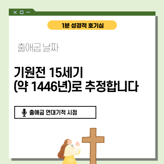출애굽 사건의 날짜에 대해서도 논쟁이 있습니다. 일부 학자들은 기원전 13세기(약 1290년)로 보며, 다른 학자들은 기원전 15세기(약 1446년)로 추정합니다. 기원전 1446년을 지지하는 증거로는 성경의 연대기와 고고학적 증거가 있습니다. 예를 들어, 열왕기상 6장 1절에서는 출애굽과 솔로몬 성전 건축 시작 사이의 기간이 480년이라고 기록되어 있습니다. 이를 토대로 출애굽은 기원전 1446년에 일어난 것으로 추정됩니다.